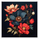 This stunning piece of art features a vibrant bouquet of flowers in rich, jewel tones. The deep red, orange, and purple hues are set against a dark background, creating a dramatic and eye-catching effect. The flowers are rendered in exquisite detail, with each petal and stem carefully crafted. This piece would make a beautiful addition to any home or office.