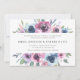 Elegant floral wedding invitations displaying your wedding details framed by a top and bottom border of purple, mauve & blue watercolor flowers with lush green leaves. The back features a solid dark blue background. Designed to coordinate with our Midnight Blooms wedding collection.