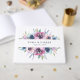 Elegant floral wedding guest book featuring your names, wedding date, and city/state on the front framed by purple, blue & mauve watercolor flowers with green leaves. The spine features space to add your name & wedding date. Designed to coordinate with our Midnight Blooms wedding collection.