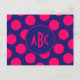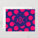 Midnight Blue and Bright Pink Dot Monogram Postcard