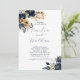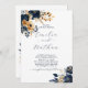 Midnight Blue and Gold Flowers Wedding Invitation
