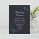 An elegant deep midnight blue 50th birthday dinner invitation featuring turquoise ornate floral leaf embellished corners to frame the invitation details.