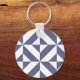 Midnight Blue Geometric Deco Cube Pattern Key Ring