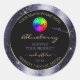 The design features a bright shimmering midnight blue glitter frame with tiny glitzy stars on a plain black background.