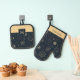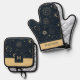 Midnight Blue Gold Star Constellation Pattern Oven Mitt & Pot Holder Set