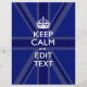 Your personalised Keep Calm saying on a bold midnight blue union jack decor. A personalised Keep Calm style saying on a one of a kind gift. Humourous or whimsical try on your creative words on two editable lines of text. Remember to use CAPITAL letters for best results.