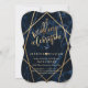 Midnight Blue Marble+Faux Gold Wedding Invitation