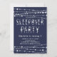 Sleepover birthday party featuring a twinkle star font set on a midnight blue background adorned with white star garland. Flip our modern invite over to view a coordinating back for an extra special touch.