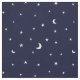 A minimal design featuring a pattern of tiny white crescent moons and stars on a midnight blue background.