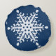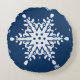 MIDNIGHT BLUE WITH SNOWY SNOWFLAKE HOLIDAY ROUND CUSHION