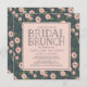 Invite your bridal shower brunch guests in chic style with our floral patterned bridal brunch invitations. Ultra feminine blush and navy design features a moody floral pattern in shades of pink, peach and hunter green on a smoky navy blue grey background, with your bridal brunch details displayed on palest blush pink.