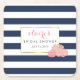 Coasters feature a bold navy stripe background, faux gold border, and a group of peonies in pretty blush tones. Coordinates with our Navy Stripe & Blush Peony invitation suites, office supplies, home goods and accessories. Customise with a monogram, name or text of your choice!