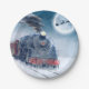 Midnight Christmas Train with Girl and Santa Paper Plate