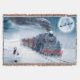 Midnight Christmas Train with Girl and Santa Throw Blanket