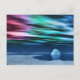 In the bay of a frozen land a great iceberg floats in the cold blue sea. Snowflakes and stars speckle the scene, and in the sky overhead the aurora glows in shades of pink, lavender, green, and blue.