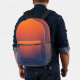 A rich, atmospheric gradient blending orange and deep navy tones, reminiscent of a glowing sunset fading into night. The smooth transition between warm and cool colors creates a dramatic yet calming abstract design.