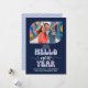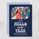 Midnight Frost Hello New Year Blue Retro Photo Holiday Card