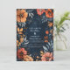 A lush baroque-inspired design blooms in rich midnight blues and burnished autumn florals, perfect for a moody yet romantic wedding vibe. Deeply atmospheric and full of vintage charm, this floral layout is ideal for fall ceremonies, gothic garden themes, or any couple seeking a dramatic and elegant tone. Customisable with your names and event details, it sets the perfect first impression for your big day.