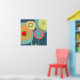 a garden at night with bright pop flowers in aqua, yellow and orange. Modern, retro and great for residential and commercial spaces.