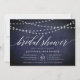 Our elegant bridal shower invitations in chic midnight blue and white feature a richly textured midnight blue background with strings of white lights across the top, and "bridal shower" in chic calligraphy script typography. Personalise with your bridal shower and registry details beneath in white lettering.