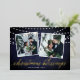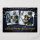 Elegant holiday photo card features a richly textured blue background festooned with white light garlands at the top. Add two favourite square photos framed by a white border. "Christmas Blessings" along the bottom in gold foil calligraphy script lettering, with your family name tucked into the design.