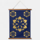 Midnight Gold: Luxe Geometric Pattern on Deep Blue Hanging Tapestry