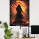 Standing tall before a blood-orange moon, the Midnight Harvester emerges cloaked in shadows and smoke, wielding a scythe forged from ancient fear. Surrounded by haunted pumpkins and scorched ruins, this ghostly reaper watches in silence, a sentinel of Halloween's darkest hour. A chilling tribute to the spirit of eerie nights and forgotten souls.