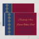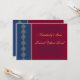 The elegant Midnight Merlot wedding collection is sure to set the tone for your special day! With the combination of midnight blue, merlot burgandy and wheat accented with a damask pattern speaks softly of class and elegance! While the front contains all of your wedding information the back continues with the same pattern and is topped off with your new couples Monogram. Look for the entire collection including reception cards, RSVP inserts, envelope seals and matching postage!
