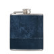 Midnight Navy Romance | Blue Satiny Grunge Damask Hip Flask