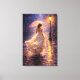 This high-resolution 8K art print masterfully simulates the visual depth and texture of a traditional oil painting, capturing a woman with a pink umbrella walking through a dark, rain-slicked street at midnight. While the surface of this 20x30 stretched canvas is completely flat to the touch, the artwork utilizes a professional visual effect to create the stunning appearance of heavy brushstrokes and textured knife marks. Part of the Gilded Canvas series by AlchemistDigitalArt, this piece features a dramatic contrast between warm lamp light and deep nocturnal shadows.