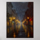 Immerse yourself in the poetic beauty of a rain-soaked evening with "Midnight Rain in the City." This captivating artwork captures a serene, romantic street scene where glowing amber lamplights pierce the misty twilight, casting golden reflections on slick cobblestones.