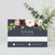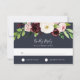 Elegant watercolor floral RSVP card features a cluster of blush pink, burgundy marsala and ivory blossoms accented with lush green botanical foliage. Personalise with your desired RSVP date as well as custom accept and decline wording on a rich navy blue background. Designed to match our Blush Romance and Midnight Romance wedding and special event collection.