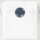 Grace your special event with timeless charm using this Midnight Rose Wreath Wedding Sticker. Designed with a deep navy background and delicately intertwined golden rings, this elegant floral arrangement features soft blush roses, dusty blue leaves, and tiny ivory blossoms. The open centre space is ideal for personalising with initials, a wedding date, or a meaningful message, adding a bespoke touch to every detail.