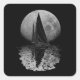 Night time sailing graphic, sailboat in front of a full moon with reflections on the water. Works best on black, but you can choose any background colour you like.