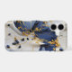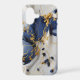 A striking marble-inspired abstract where deep sapphire blue flows through smooth ivory stone, accented by intricate gold veining that weaves like delicate metallic threads. Scattered dark mineral-like textures add depth and a natural stone realism, while the fluid movement keeps the composition modern and dynamic. The balance of rich navy tones, soft neutrals, and luminous gold creates a timeless yet contemporary luxury aesthetic. Perfect for sophisticated interiors, elegant accessories, and statement designs that embrace refined marble beauty.