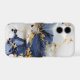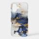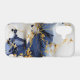 A striking marble-inspired abstract where deep sapphire blue flows through smooth ivory stone, accented by intricate gold veining that weaves like delicate metallic threads. Scattered dark mineral-like textures add depth and a natural stone realism, while the fluid movement keeps the composition modern and dynamic. The balance of rich navy tones, soft neutrals, and luminous gold creates a timeless yet contemporary luxury aesthetic. Perfect for sophisticated interiors, elegant accessories, and statement designs that embrace refined marble beauty.