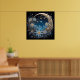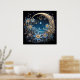 This intricate digital painting, "Midnight Serenity," captures a breathtaking nocturnal landscape. A crescent moon and a star-studded sky are framed by ornate, swirling floral designs in shades of blue and gold. The scene evokes a sense of magical calm and beauty, perfect for a poster that adds an ethereal touch to any room.