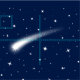 Shooting star fabric by the yard. Midnight dark blue sky with many small stars and galaxies and a bright white shooting star streaking across the sky. Large print for your astronomy and space related projects.
