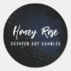 Sparkly navy blue candle labels and branding with a midnight theme.