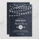 Chic modern summer wedding engagement party invitation design with simple elegant glowing string lights hanging across the top and a classy mix of modern and calligraphy script fonts on a printed faux watercolor texture background. A simple and stylish preppy design, perfect for summer! Click the CUSTOMIZE IT button to customise fonts, move text around and create your own unique one-of-a-kind invitation design.