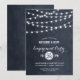 Chic modern summer wedding engagement party invitation design with simple elegant glowing string lights hanging across the top and a classy mix of modern and calligraphy script fonts on a printed faux watercolor texture background. A simple and stylish preppy design, perfect for summer! Click the CUSTOMIZE IT button to customise fonts, move text around and create your own unique one-of-a-kind invitation design.