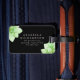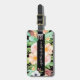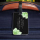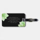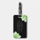 This stylish luggage tag features trendy watercolor succulents and cactus flowers in shades of green, pink, and white with a dramatic black background.