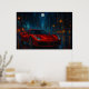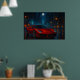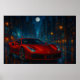Bathed in moonlight and city glow, Midnight Velocity captures a fleeting moment of stillness in motion. A crimson Ferrari rests on rain-slicked pavement, its sleek form reflecting the pulse of the urban night. Towering buildings loom in the background, their windows flickering like distant stars, while the full moon casts a silvery hush over the scene. The expressive brushwork and saturated palette evoke both cinematic drama and quiet introspection—where speed meets solitude, and modernity hums beneath the surface of a sleeping city.