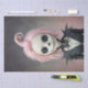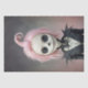 A whimsical yet haunting character with sharp gothic fashion, a curled pink bob, and a tuxedo-style dress. Perfect for creating decoupage pieces with a playful yet eerie vibe—ideal for Halloween crafts or alternative fashion themes
