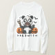 Embrace playful horror with this "Midnight Zombie Panda" design from the Midnight Skulls collection. A blood-streaked panda with wide, eerie eyes clutches a skeleton staff, flanked by glowing jack-o’-lanterns and fluttering bats against a dark backdrop. Bold HALLOWEEN lettering anchors the top, blending whimsical charm and spooky vibes. Perfect for T‑shirts, hoodies, and festive apparel, this unique piece is ideal for fans of cute horror and Halloween-themed fashion.