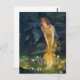 John Robert Hughes Midssumer Eve postcard. Oil painting on canvas from 1908. Pre-Raphaelite painter John Robert Hughes painted a variety of different paintings detaling mythological and fantasy subjects. Midsummer Eve depicts a pretty young woman walking through the forest at night who stumbles upon a lively fairy dance. The fairies play at her feet waving glowing orbs and waving their hands. A pretty gift for fans of fairies, fantasy art, and Pre-Raphaelite paintings.