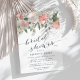 Elegant and modern floral bridal shower invitation features a bouquet of soft pastel watercolor roses, peonies and hydrangeas in shades of blush pink, peach and cream, with lush green botanical leaves and eucalyptus. Personalise with your bridal shower details in elegant smoky blue lettering accented with handwritten style calligraphy.