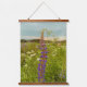 The polyester fabric displayed many wrinkles and several sharp creases throughout.  At the bottom of the tapestry, I noticed a bulge in the fabric because it was not pulled tight enough before being connected to the wooden boards.  It took me over an hour to spay water on the tapestry before putting it on an ironing board where I used a warm iron over a polyester cloth to remove the wrinkles and creases in the material.   I was able to get out the wrinkles and creases that made that tapestry look as beautiful as its picture.