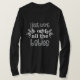 I love this artist. Their designs are cute and whimsical. But I ordered too large a size. I don’t mind as I’m going to use it to sleep in. I’ll probably order this in a short sleeve style to wear in the summer. My family loves my chocolate chip cookies so this design has significance for me. Bright and bold. It was off center but that was my fault as I edited the design. Should have left it alone but was just trying out the editing feature. Great editing system to play around with and change things up a little bit