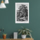 This antique reproduction lithograph print is of an oak tree by German artist and illustrator Ernst Heyn. Beautiful nature scene with deer under the mighty oak and near a stream. This black and white print becomes a stunning line drawing when viewed up close, while lending a classic feel to any room in the house. Inspirational quote “An Oak tree is a daily reminder that great things often have small beginnings.”